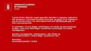 Ifm. USA/Israels angreb i Iran, og Irans gengældelse i bl.a. Qatar, Bahrain og UAE, er der ændring i sikkerhedssituationen i UAE.